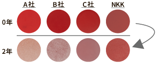 割れ、破損がない。退色(他社商品との比較) |