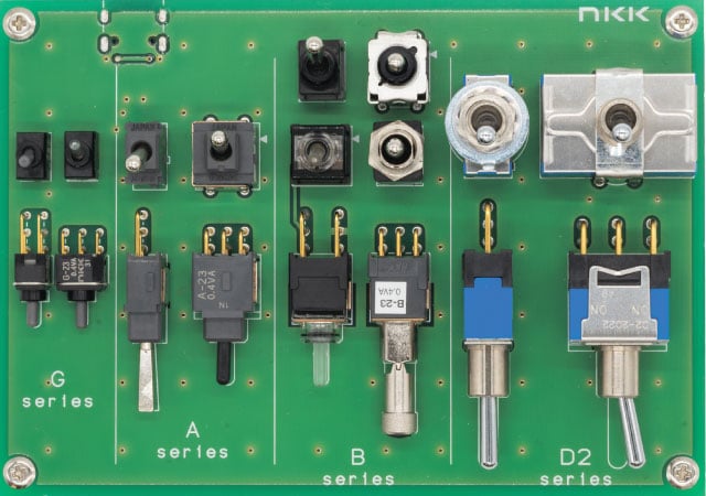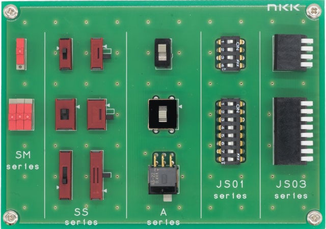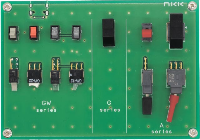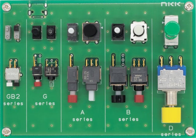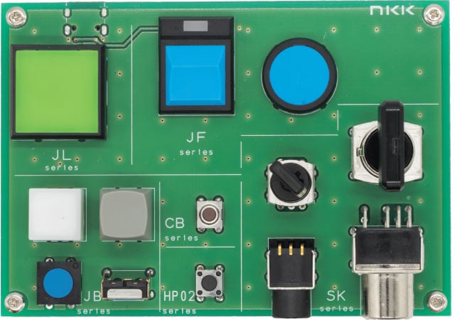 本記事では代表的な小中型サイズの基板実装形スイッチのご紹介と、その中から他メーカにはない珍しいタイプの商品をご紹介させていただきます。なお、各シリーズの代表的な機種を実装した基板デモ機も用意していますので引合発生時にはNKKにお声がけ下さい。